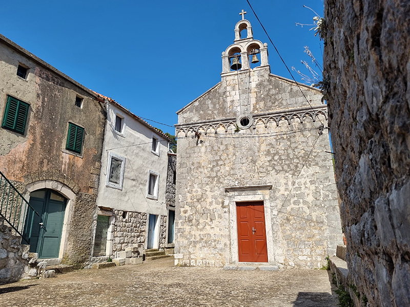 • Crkva Gospe od Brijega je građena u renesansno-baroknom stilu 14.-15. stoljeće kao jednobrodna s četvrtastom apsidom, prostranim trijemom, trostrukom preslicom sa dva zvona i reljefom Isusova imena (IHS) na pročelju. Unutrašnjost ima bačvasti strop, a na glavnom oltaru baroknu palu s prikazom Uznesenja Djevice Marije. Slika dimenzija 435×830 je iz 1798. godine. Trijumfalni luk dijeli prezbiterij od lađe crkve. Na njegovom vrhu je lijepa drvena Pieta. Od vrijednosti sačuvan je olovni Pax, rad talijanskog majstora, s prikazom umrlog Krista okruženog svecima. Gospa od Brijega je na glasu čudotvornosti, tako da su joj otočani i Korićani poklanjali vrijedne predmete svojega zavjeta. Do početka 16. st. crkva je bila župna za ovaj dio Mljeta. Dana 29. kolovoza 1669. mjesto se uspješno obranilo od navale hajduka i pljačkaša iz Kotora, koji su onda haračili dubrovačkim krajem, ali nije uspjelo izbjeći epidemiju kuge 1770. Godine. Tada je ono bilo gotovo uništeno, a tak mali broj preživjelih seli zapadnije ispod brda Glogovačka (322m) i na padini prema moru osniva župno središte Maranoviće se crkvom sv. Antuna opata.